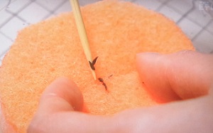 5.ペットボトルの上に部分のほうにスポンジをセットし